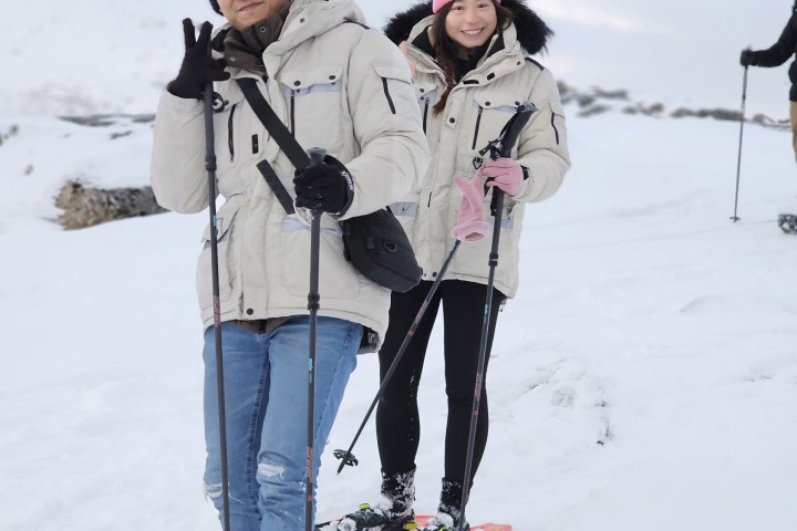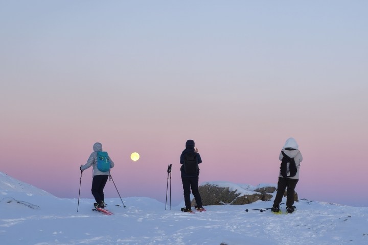 The tour includes necessary equipment, including snowshoes and poles.